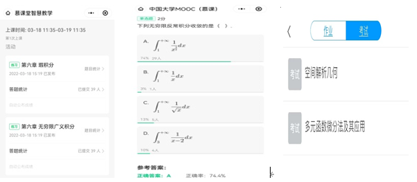 大數部全體教師注重課后的章節測驗,并以此了解學生對各知識點掌握程度。如:利用慕課堂、學習通等平臺組織在線隨堂測驗,結合平臺統計的正確率,針對學生掌握不牢固的知識點進行重點講解,以提高學生的學習成效,保障線上教學期間的教學質量。