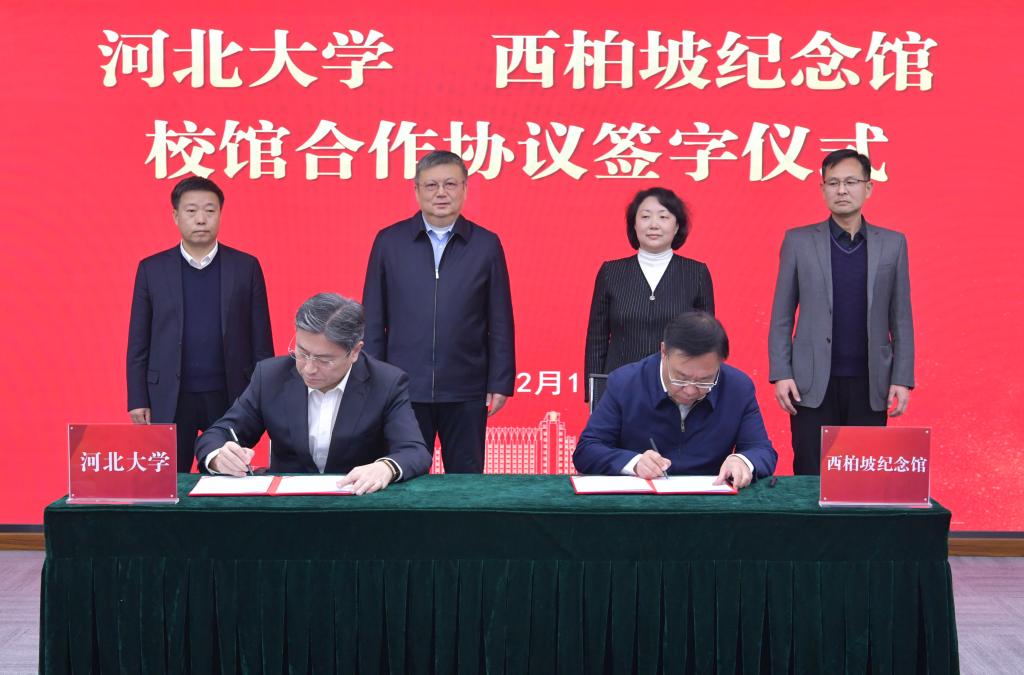 12月13日,河北大學與西柏坡紀念館戰略合作協議簽約儀式在五四路校區舉行。黨委書記劉兵,黨委常委、副校長單耀軍,黨委常委、副校長宋鳳軒;西柏坡管理局局長、西柏坡紀念館黨委書記盧潤彩,副館長段彥峰等出席儀式。