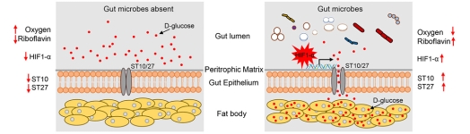 圖1腸道微生物調控紅脂大小蠹生長發育的模式圖